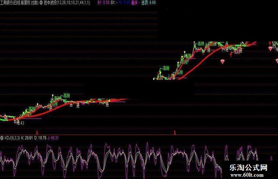 DRAWTEXT(CROSS(庄家,散户) AND 散户>70,H+0.05,'←高抛'),COLORGREEN;