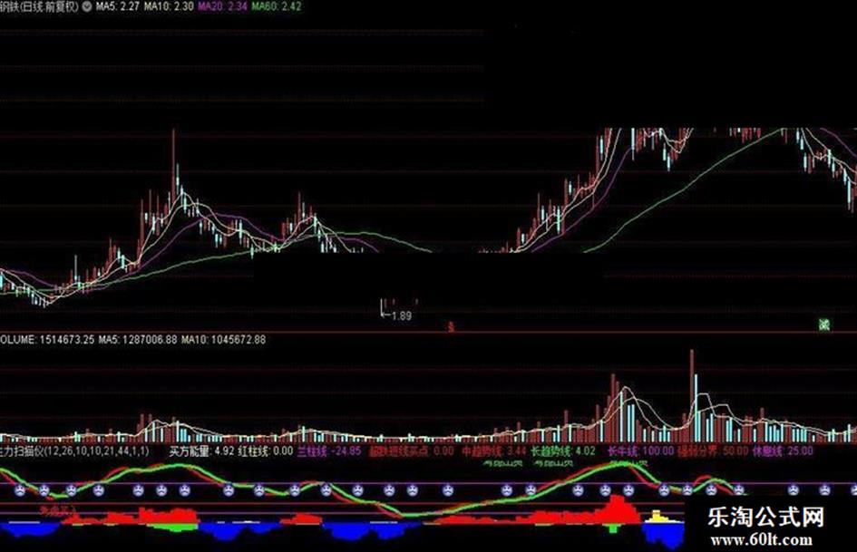 长趋势线:(SUM(中趋势线,6)) / 6,linethick3,colorGreen;