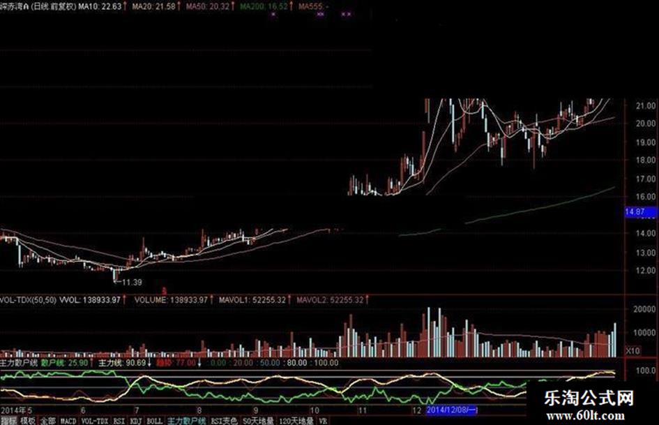 散户线: 100*(HHV(HIGH,60)-CLOSE)/(HHV(HIGH,60)-LLV(LOW,60)),LINETHICK2,COLOR00FF00;