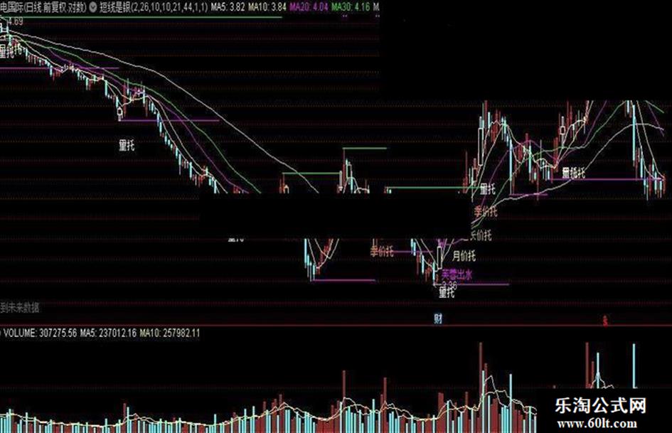 短长价托:=MA5>MA62 AND MA5>MA10 AND CROSS(MA10,MA62);