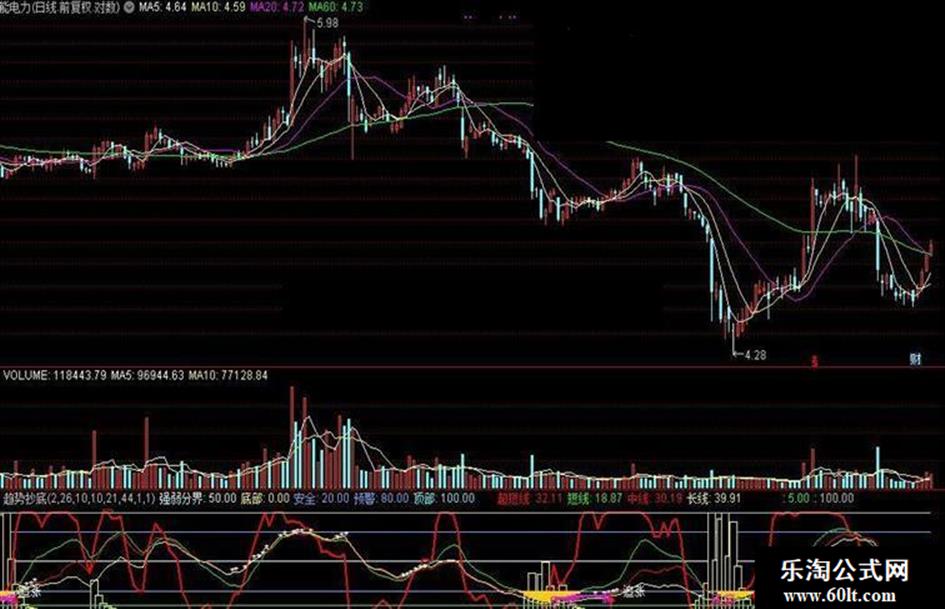 底:DRAWTEXT(CROSS(中线2,-90) AND (长线<中线 AND 长线>REF(长线,1)OR 短线<20 AND 中线<20 AND 长线<20),长线,'底'),COLORFF00FF;