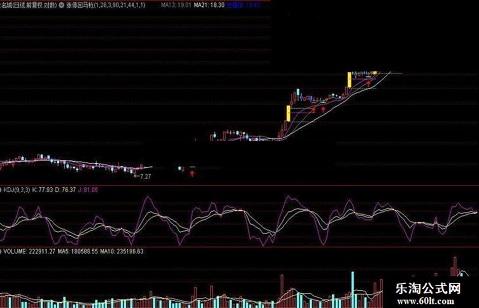 DRAWTEXT((O+C)/2 AND 涨停,(O+C)/2 ,B3),COLORMAGENTA;