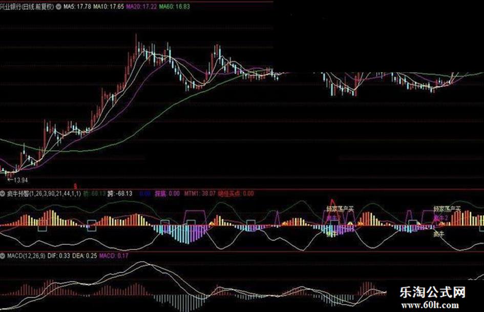 {DRAWTEXT(CROSS(绝佳买点,2.40000) ,-55,'疯牛1'),COLORFFFFCC,LINETHICK3 ; };