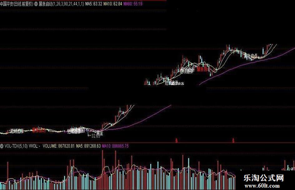 drawtext(COUNT(XG,3)=1 AND XG and c>ma(c,20),l-0.02,'暴涨启动'),colorred;