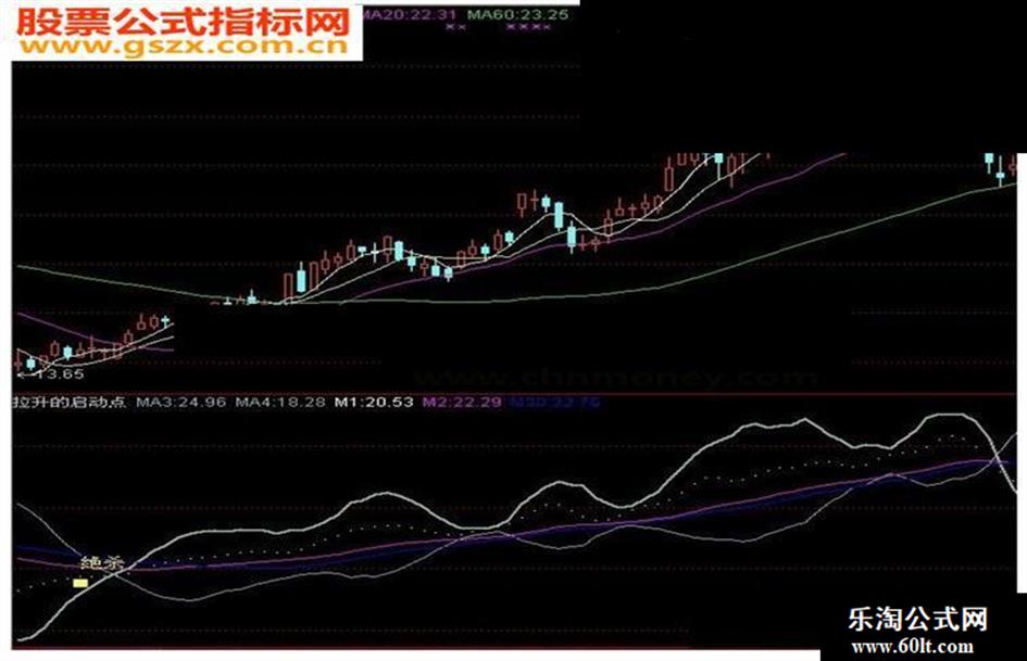 DRAWTEXT(CROSS(VAR3,0) AND ((CLOSE + LOW)/(2) > MA((CLOSE + LOW)/(2),8)),(M2)*(1.01),'绝杀'),LINETHICK2,COLORYELLOW;