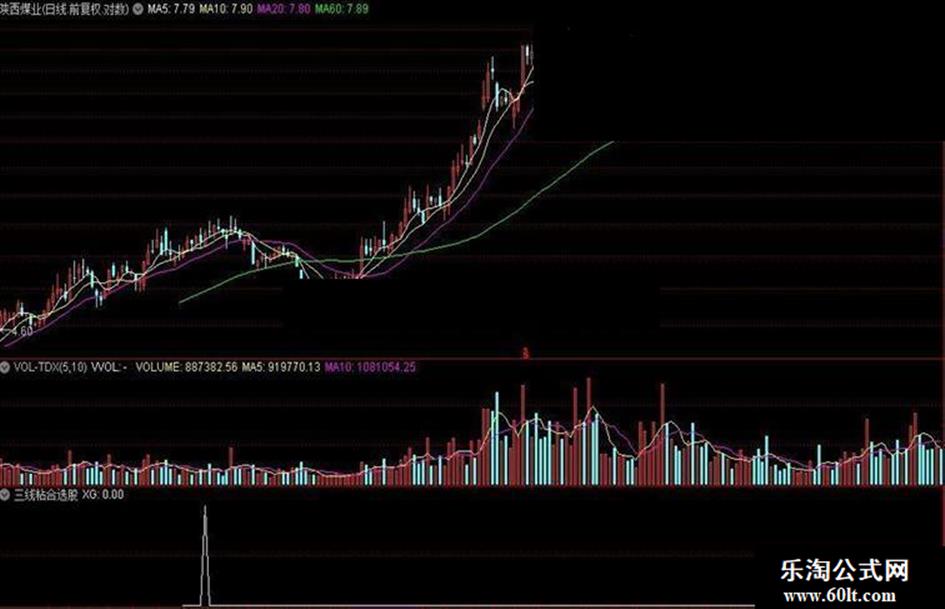 XG:C>REF(C,1) AND MA(C,5)>MA(C,10) AND MA(C,20)>MA(C,60) AND REF(MA(C,20),1)>REF(MA(C,60),1) AND MA(C,60)>REF(MA(C,60),1) AND FL>MA(C,60) AND FS>MA(C,60) AND FL=FS AND REF(FL,1)>REF(FS,1);