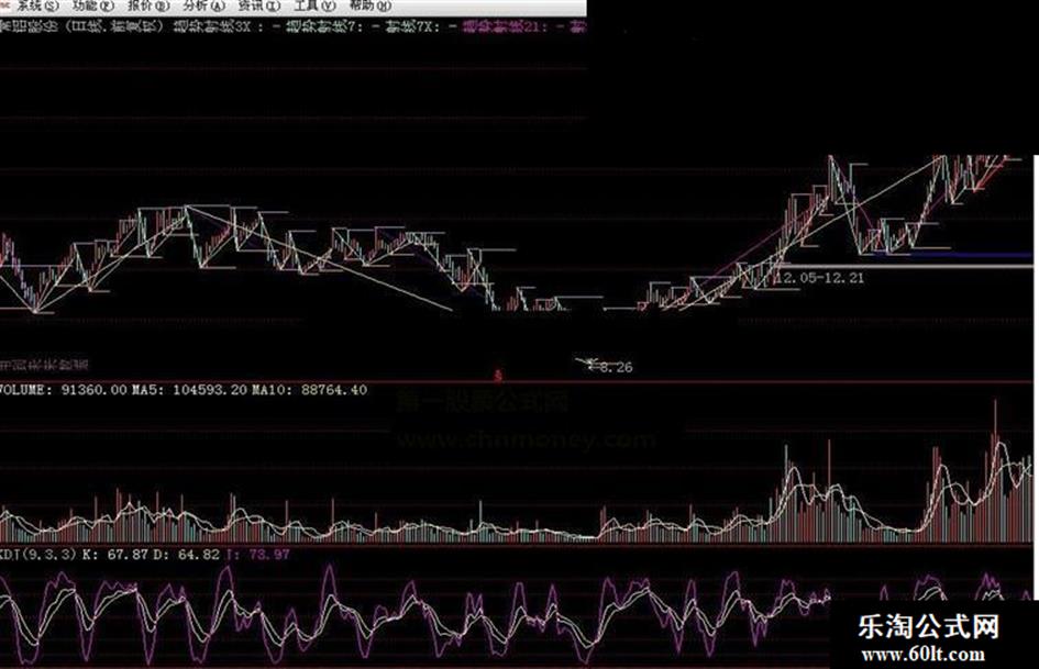趋势射线7: DRAWLINE(H=HHV(H,7),H,L=LLV(L,7),L,0),COLOR9AFF89;