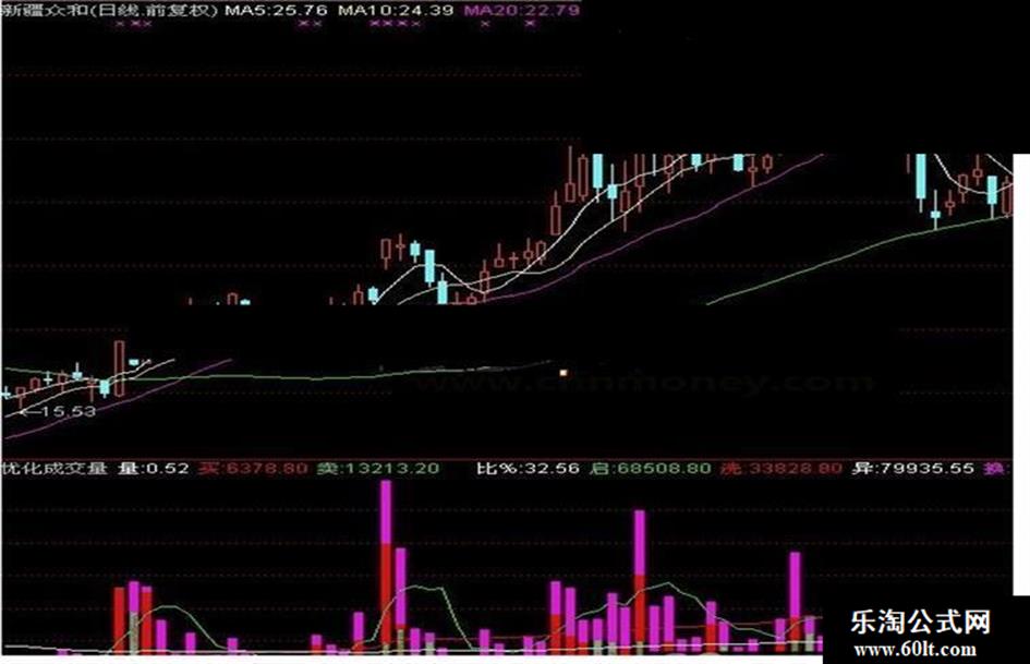 买:IF(CLOSE>OPEN,VAR1*(HIGH-LOW),IF(CLOSE<OPEN,VAR1*((HIGH-OPEN)+(CLOSE-LOW)),VOL/2)),COLORRED,POINTDOT;