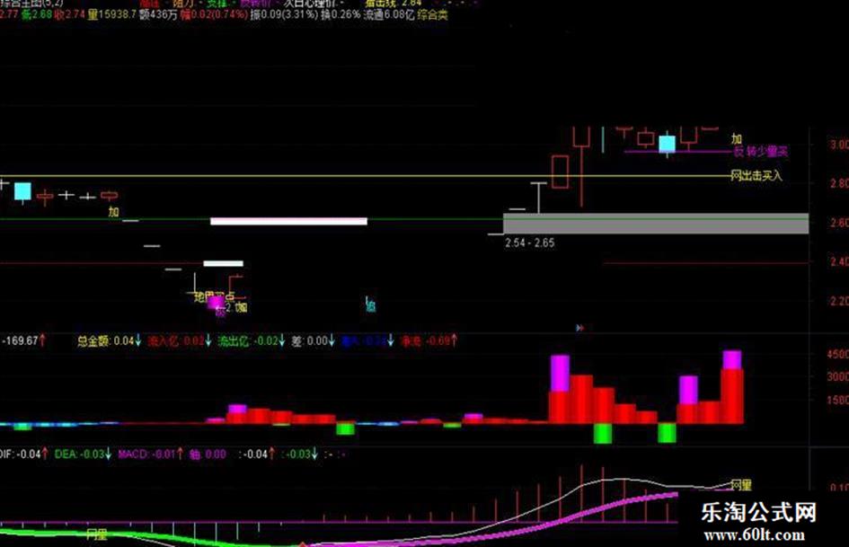 当满足条件净流>0时,在0和净流位置之间画柱状线,宽度为0.5,0不为0则画空心柱.,COLORCC66FF