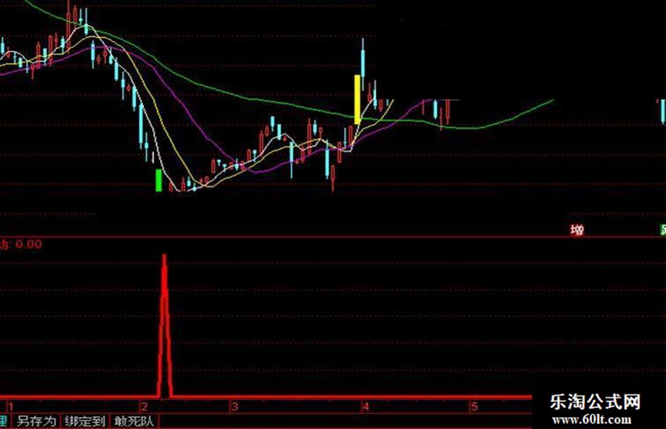 启动:=(A1 AND B1 AND REF(C/REF(C,1)<0.965,1) AND O>REF(C,1)*1.015)*80 COLORRED LINETHICK3 ;