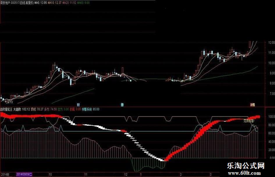 本指标从趋势、量能两个层面对买卖点进行了分析,两方印证,提供明确的抄底、 见顶回落提示,并增加了预警系统,真称得上是全能指标。操作建议:趋势线由白柱转 为红柱时,买入;趋势线由红柱转为白柱时,卖出