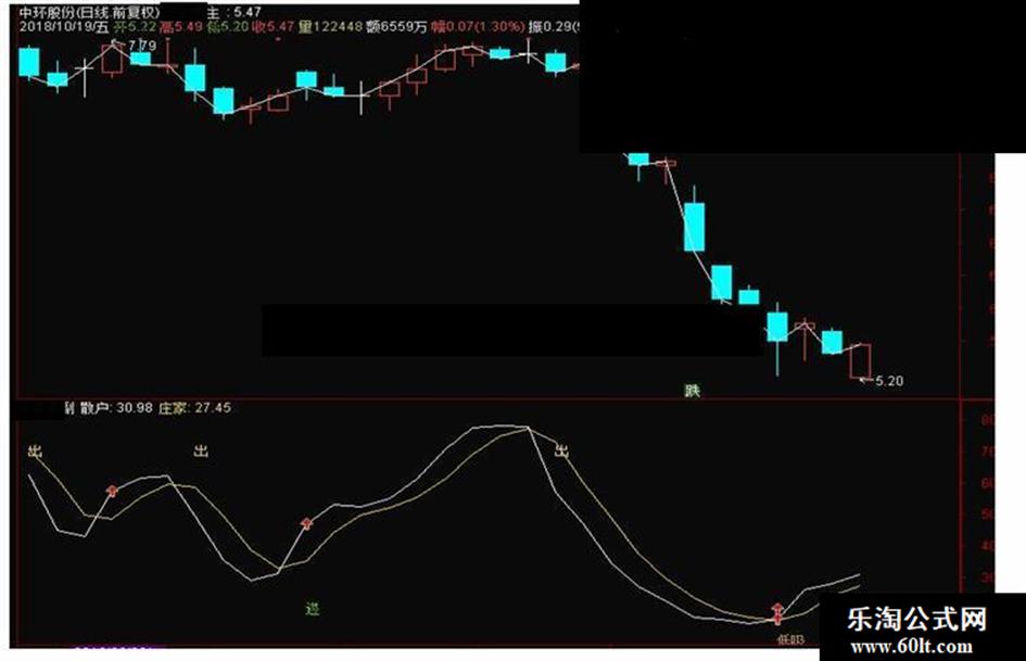 DRAWTEXT(CROSS(庄家,散户) AND 散户>40 AND 71>散户,70,'出'),COLOR00FFFF;