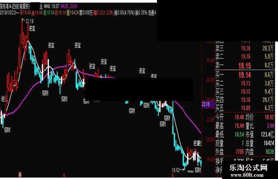 DRAWTEXT (SEL,HIGH*1.05,'进宝'),COLORWHITE,LINETHICK5;
