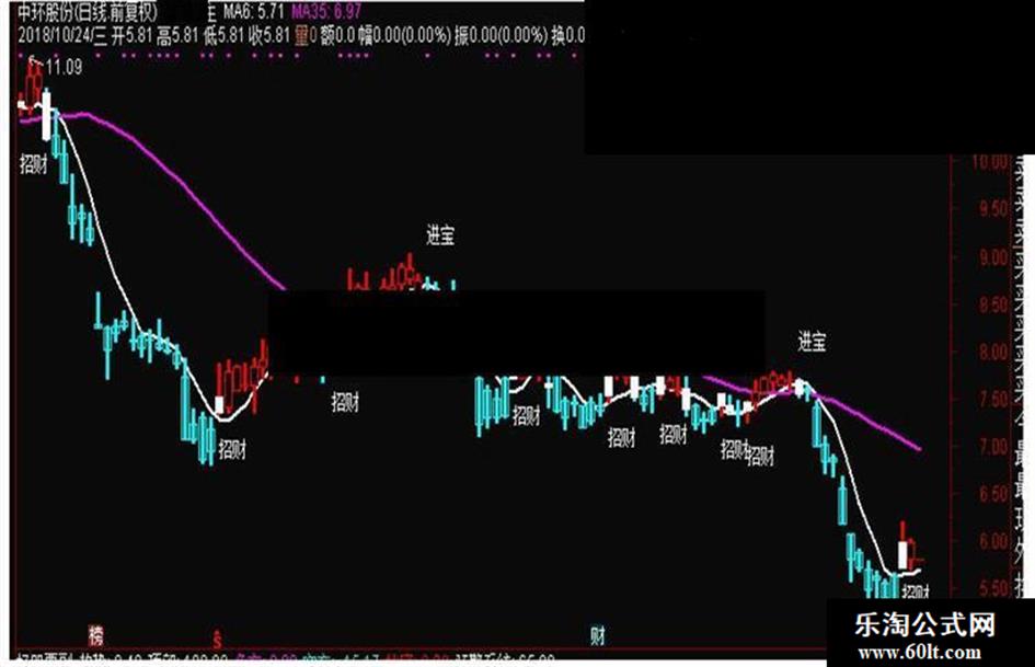 SEL:=CROSS(卖线,买线);DRAWTEXT(BUY1,LOW*0.95,'招财'),COLORWHITE,LINETHICK5;