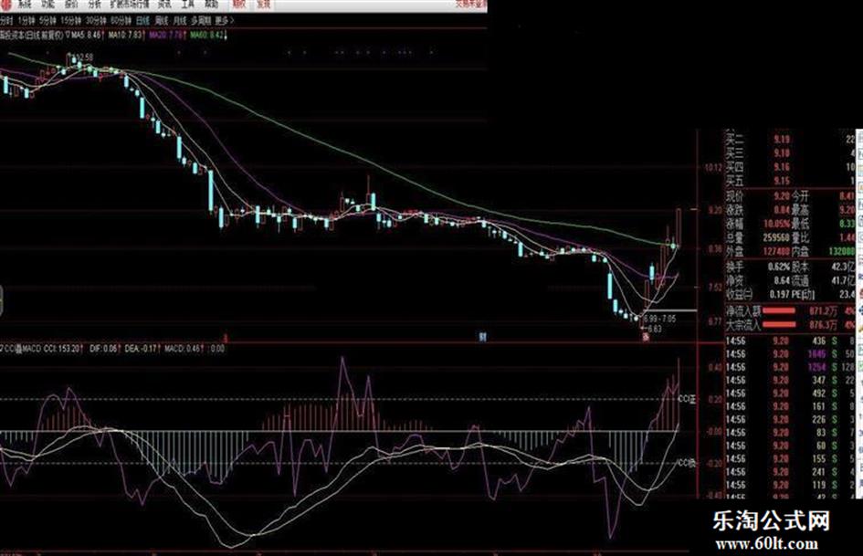 DRAWTEXT(ISLASTBAR,100/500,'CCI正100'),COLORWHITE;