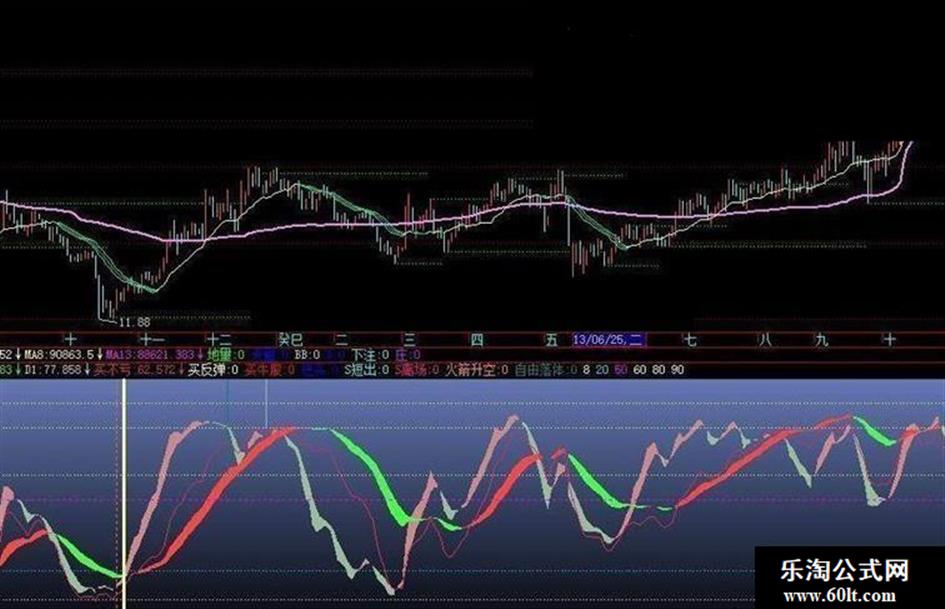 买牛股:(CROSS(K1,D1) AND REF(K1,1)<12)*100,STICK,LINETHICK2,COLORRED;