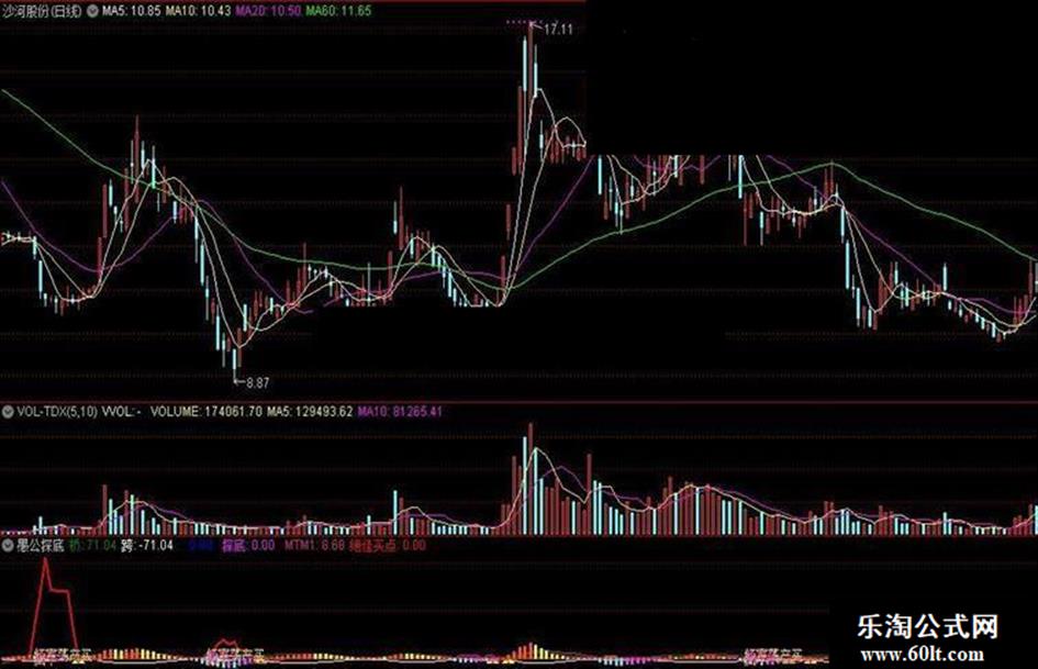 探底:IF((趋势<=5),58,0),COLORFF00FF;