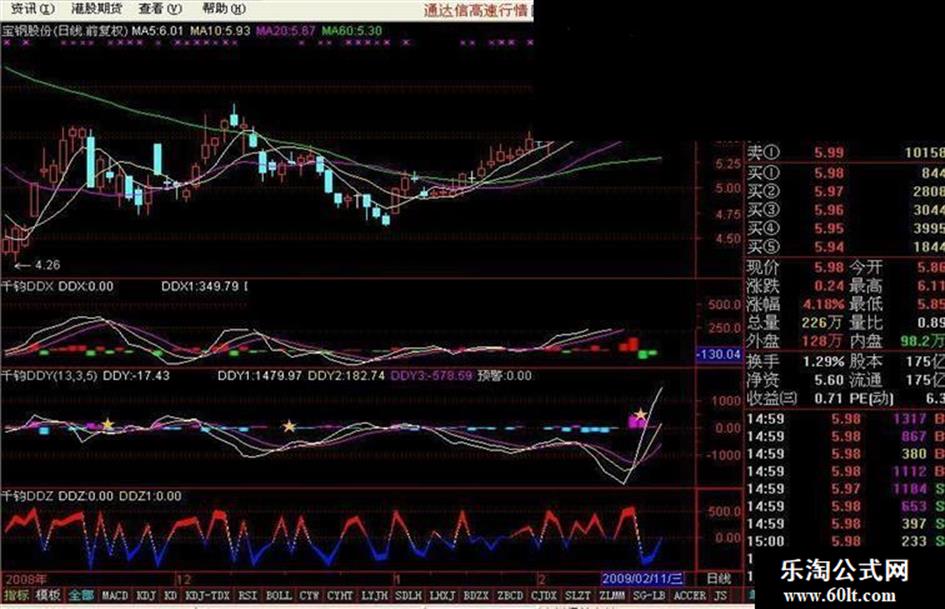 预警:DDY>0 AND CROSS(DDY1,DDY2) AND DDY1<0,LINETHICK;