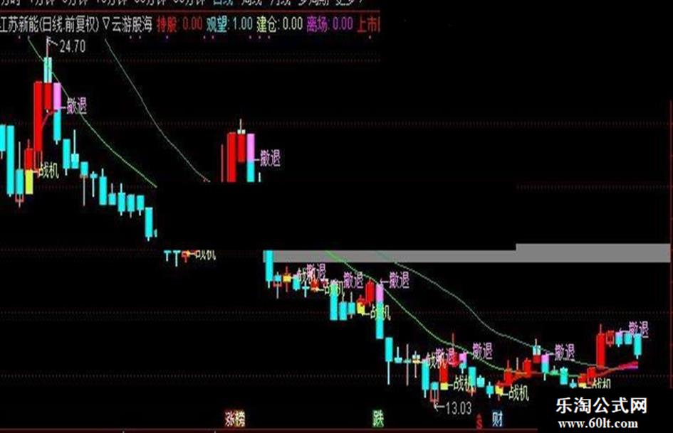 DRAWTEXT(VAR1A,REF(CLOSE,1)+0.1,'←撤退'),COLORFF99FF;