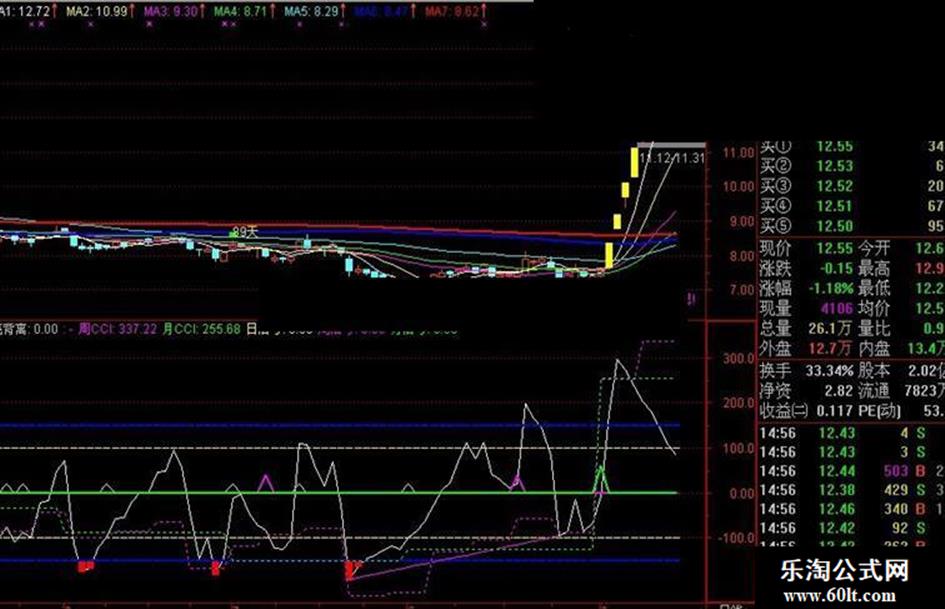 首先感谢平平200911老师给的启迪,本人添加了更为直观的信号指示。至于周CCI,月CCI隐形函数的问题,个人认为正像平平老师说的运气好的话会翻倍。只要抓到强势股,这些信号不会消失的,参考价值还是很大滴。认同本人的观点的童鞋,加分顶顶吧
