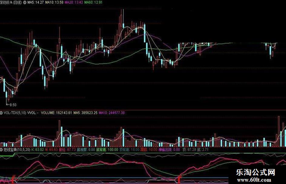 底背离: IF((VAR26<10),90,100), COLORGREEN,LINETHICK2;