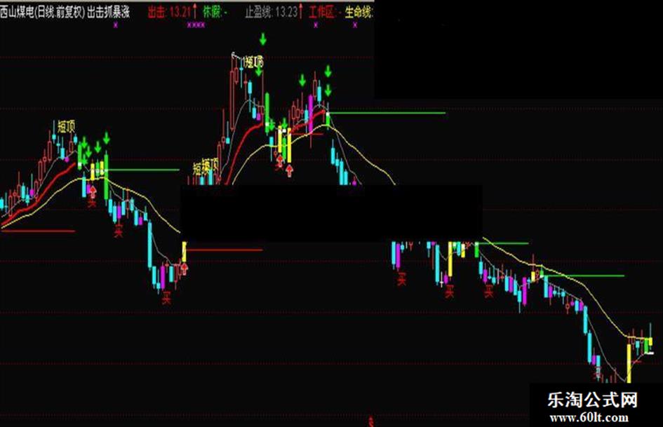 工作区:IF(C>=工作线 AND EMA(C,14)>=EMA(C,25),工作线,DRAWNULL), COLORRED,LINETHICK2;