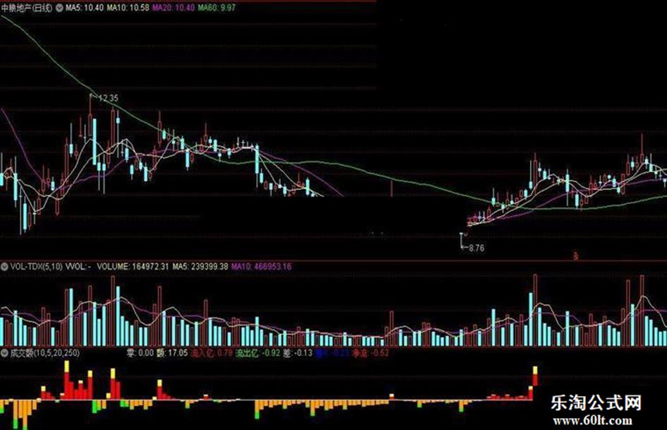 流入亿:IF(CLOSE>OPEN,VAR1*(HIGH-LOW),IF(CLOSE<OPEN,VAR1*((HIGH-OPEN)+(CLOSE-LOW)),AMOUNT/2))/100000000,COLORRED,NODRAW;