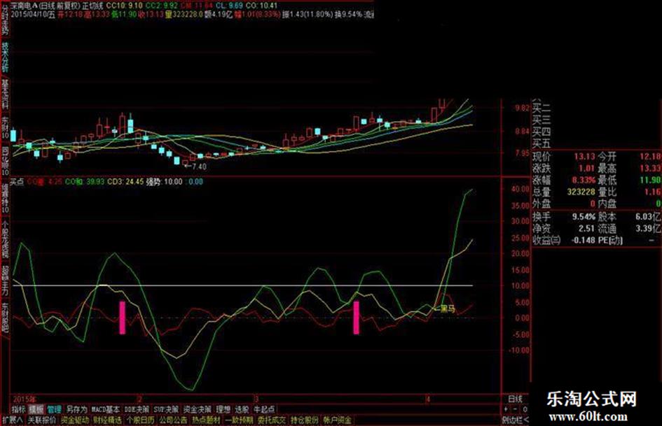 1:黄线大于绿线基本都是短线底部,k线往上走势,出现黑马的位置如果出现大幅上涨拉升,量能放大现象,牛股就在眼前;