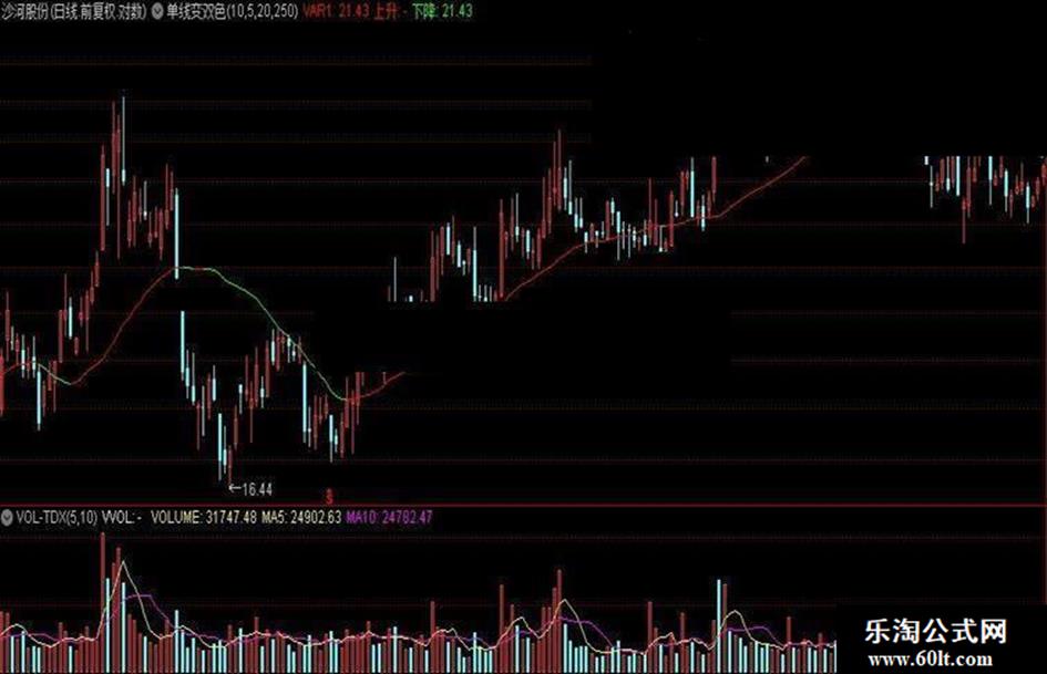 VAR1:MA(C,30),COLORRED; 上升:IF(VAR1>REF(VAR1,1),VAR1,DRAWNULL),COLORRED; 下降:IF(VAR1<REF(VAR1,1),VAR1,DRAWNULL),COLORGREEN;