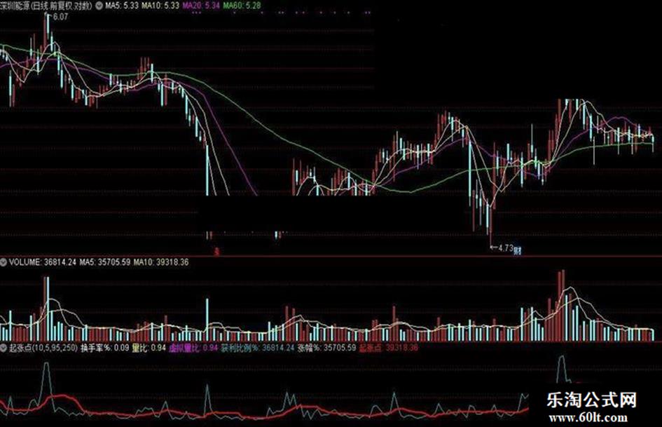 起涨点:IF(启动,101,0)COLORRED,LINETHICK2;