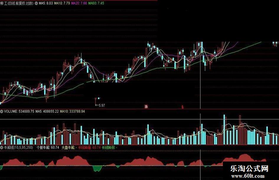 长线转强:IF(个股牛熊>50,个股牛熊,DRAWNULL),COLORRED;