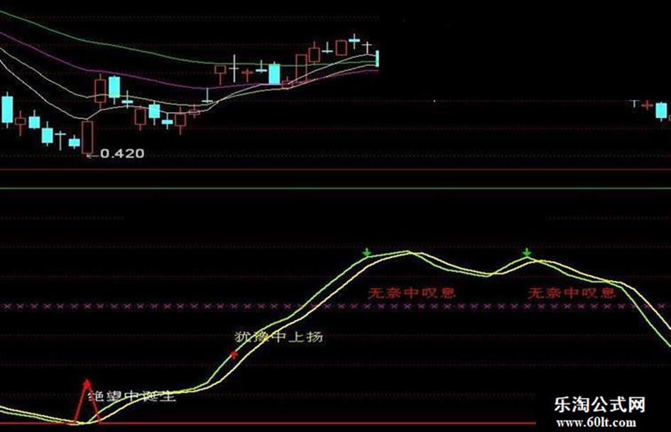 DRAWTEXT(CROSS(小股民,新庄) AND 小股民<22,20,'绝望中诞生'),COLORWHITE,LINETHICK7 ;
