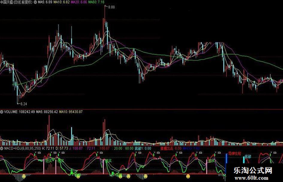DRAWTEXT(CROSS(J,(0 - 5)),(0 - 4),'。低吸'),COLORGREEN;
