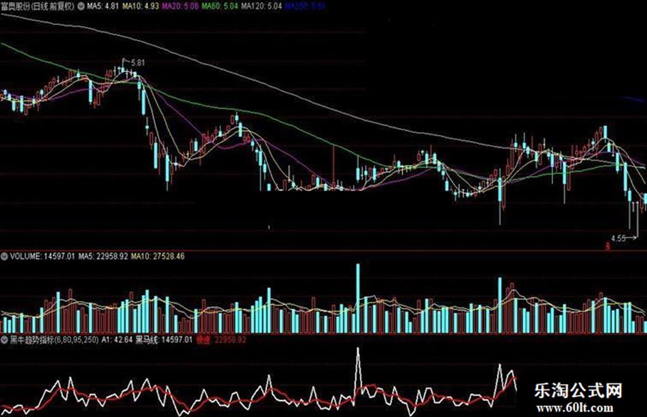黑马线:EMA(A1,5)/24,LINETHICK2,{COLOR6600FF},COLORWHITE;