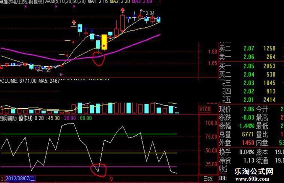 操作线从20下往上突破,就是底部已经形成,开始涨升,实际操纵起来,在平衡市以及牛市中,只要操作线进入20以下,就可以开始考虑进入操作,准确率较高,特别是用在涨停回调确认比较有效。特别建议不要在大盘不好的时候介入。