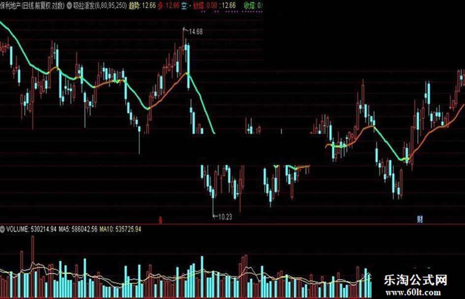多:IF(趋势>REF(趋势,1),趋势,DRAWNULL),COLORRED,LINETHICK3;