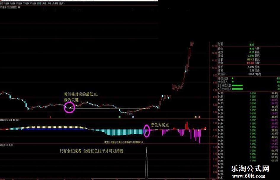 DRAWTEXT_FIX(1,0.5,1.5 ,0,'绿空仓-粉重仓-红满仓-红绿相间1/3-粉绿相间1/2'),COLORYELLOW;