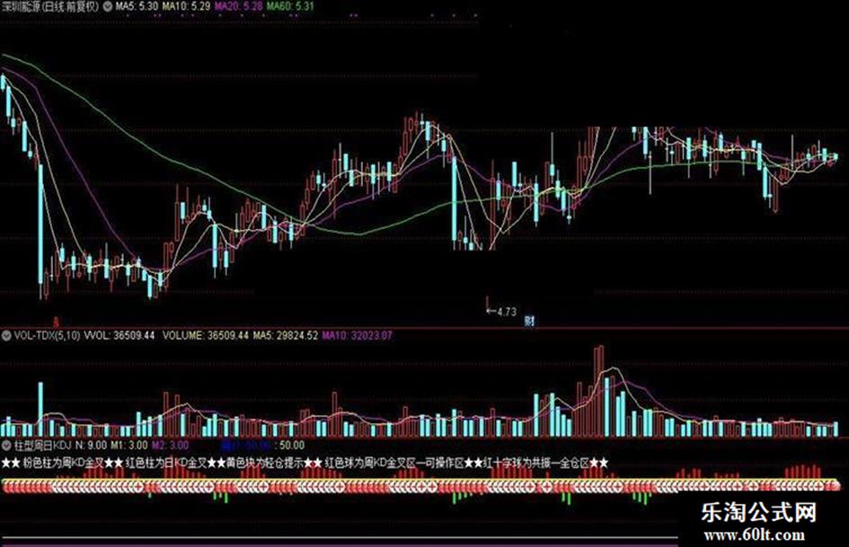 DRAWTEXT_FIX(1,0.0,0.0,0,'★★ 粉色柱为周KD金叉★★ 红色柱为日KD金叉★★黄色块为轻仓提示★★ 红色球为周KD金叉区—可操作区★★红十字球为共振—全仓区★★ ') ,COLORFFFFFF;