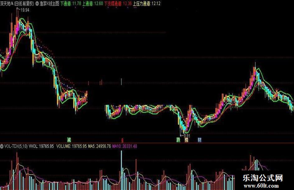 下通道:MA(VAR7,3)*(1-VAR8),LINETHICK2,COLORGREEN;