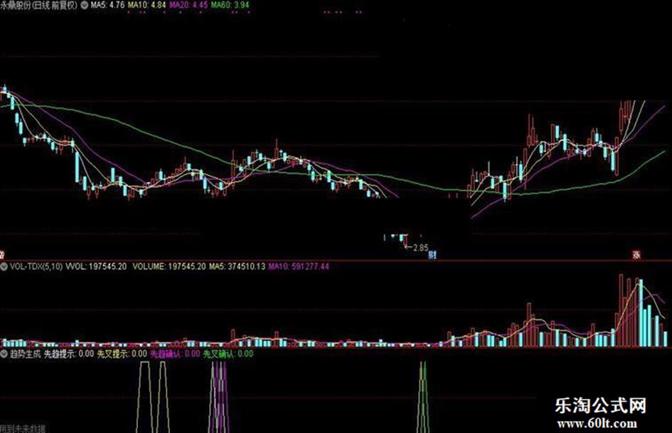 YTJ4:=SHARP<RSI2 AND WR1>REF(WR1,1) AND 趋势线-WR1<1 AND 趋势线>WR1;