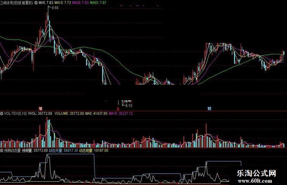 IF(预测量=动态地量 AND 动态地量<REF(动态地量,1),动态地量,DRAWNULL),LINETHICK3,COLORRED;