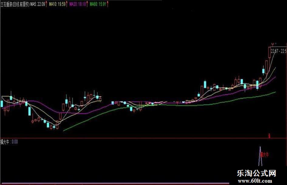 真正的擒大牛指标。只要上升趋势没有改变,每一次的回调都是“绝佳”买入点。公式简单实用,配合成交量一起使用会起到事半功倍的效果。慢慢揣摩,必有收获