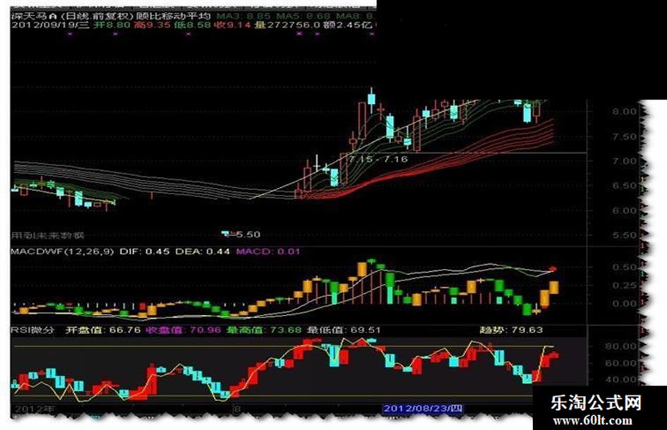 {[RSI微分]加上80和20条线。分别代表顶部和底部。}
