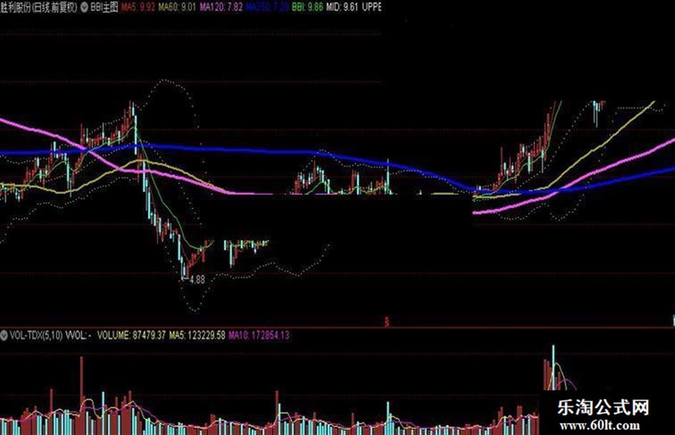 BBI:(MA(CLOSE,3)+MA(CLOSE,6)+MA(CLOSE,12)+MA(CLOSE,24))/4,COLOR00FF00;