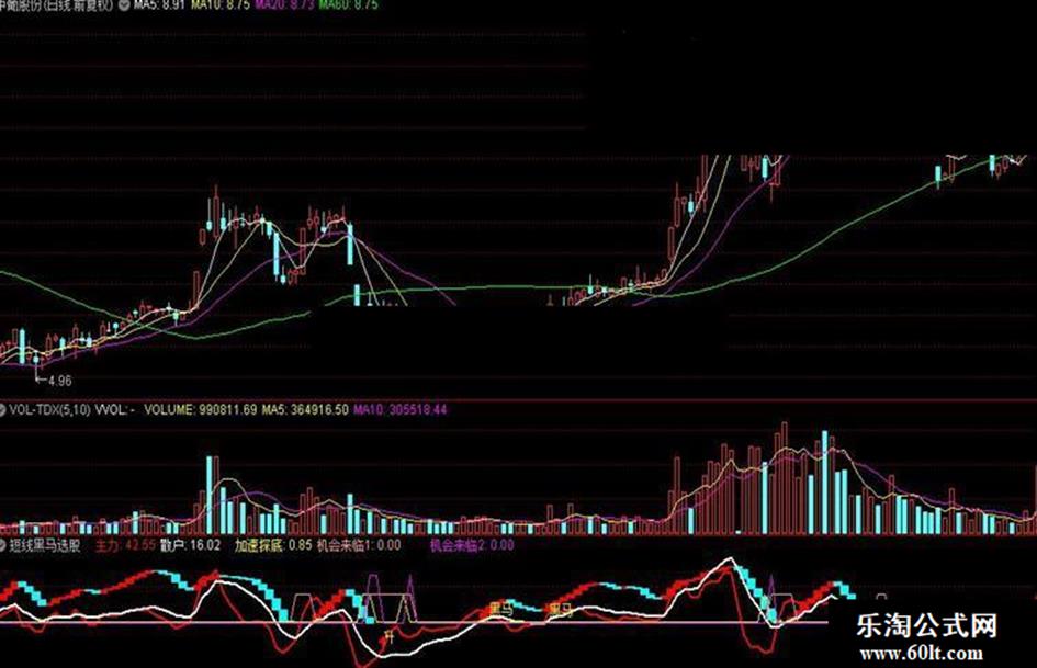 DRAWTEXT(CROSS(A11,黑马线)AND 黑马线<A51,黑马线,'黑马'),COLORYELLOW; DRAWTEXT(CROSS(黑马线,A51)