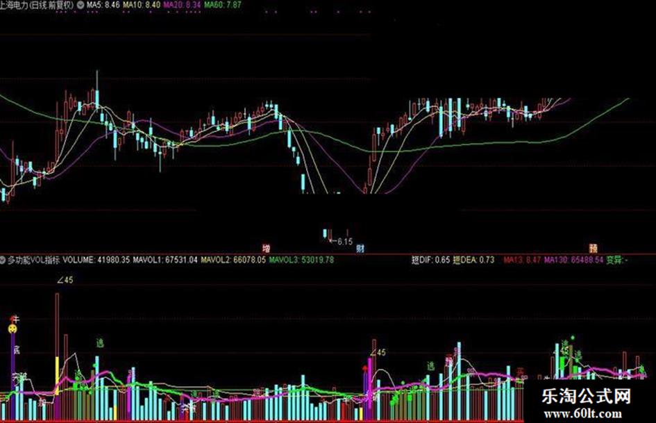 变异:IF(MA(X1,13)>MA(X1,5),MA(VOL,13),DRAWNULL),COLOR00FF00,LINETHICK3;