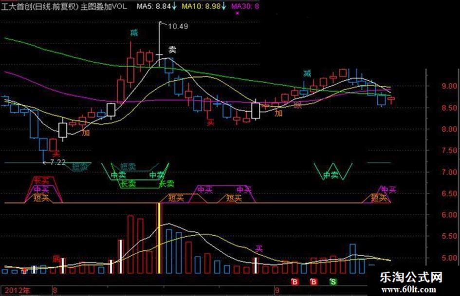 炒股四五年,一开始羡慕同行赚钱的行为,所以到各处搜寻万能指标,于是股软中指标越来越多,看得眼花缭乱。到头来投入的资金所剩无几,现在想起来真的很幼稚。俗话说:“指标不是万能的,但没有指标是不行的”。无论何种各指标,都离不开基本:MACD、KDJ、RSI、VOL、BIAS、BOLL、XS……等,所以今天发表此文,“返璞归真”,主要共享自用的几个主图和副图,供小散们参考(高手可略过)。首先声明,所发指标都是来自论坛,不是原创,有侵犯老师及前辈的地方短信告知,立即删除;所有指标不构成投资建议,据此操作,责任自负。