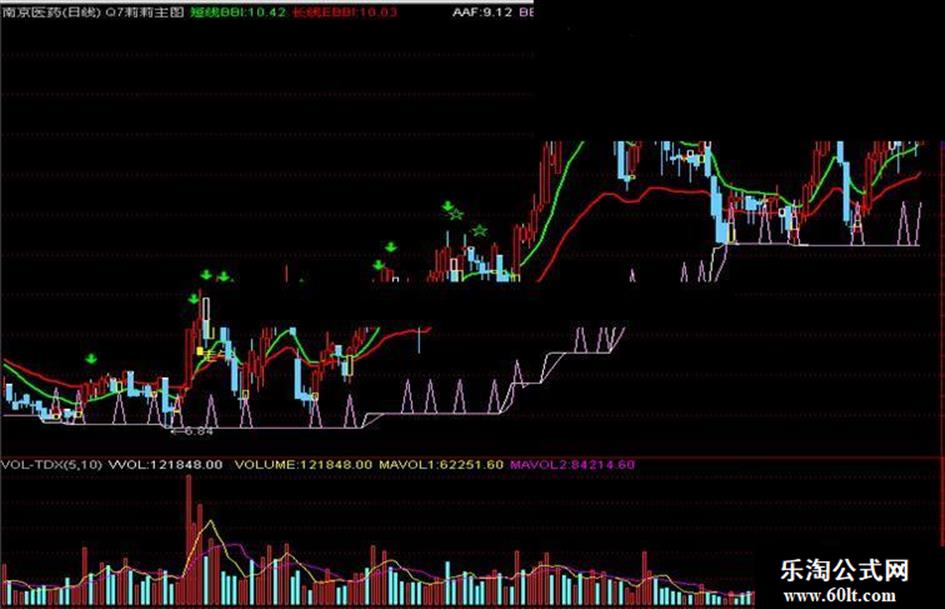 绿箭头和星号出现卖出