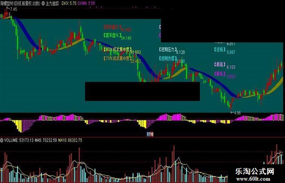 DRAWTEXT(T4=1 AND CURRBARSCOUNT=N1 AND PERIOD=5,AAA-(AAA*TS4),'【70%成本集中度】'),COLOR008FFF;