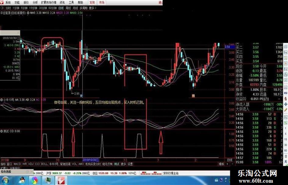 公式是前辈的变盘时间公式,原理就是当五日成本和前五日成本相同时,即是变盘时间。我根据自己的理解做了一个选股公式,这个指标主要针对震荡的股票。